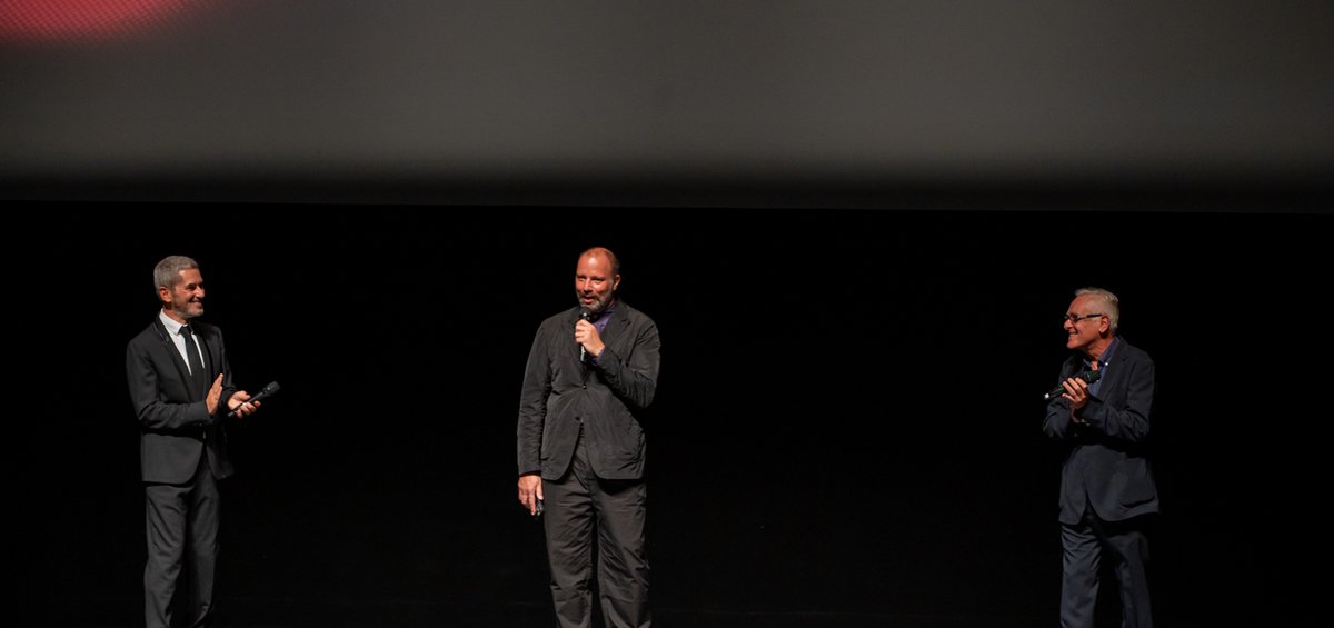 Το κοινό που κατέκλυσε την αίθουσα Τριάντη για να παρακολουθήσει την πολυαναμενόμενη πρεμιέρα στη δεύτερη μόλις φεστιβαλική προβολή της στον κόσμο, μετά την φετινή Biennale, περίμενε μια θεαματική έκπληξη: την παρουσία στη σκηνή του διεθνούς Γιώργου Λάνθιμου και του κορυφαίου συνεργάτη του, μοντέρ, Γιώργου Μαυροψαρίδη!