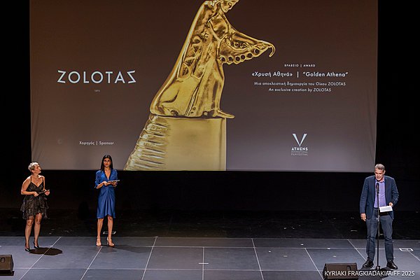 Το βραβείο-αγαλματίδιο Χρυσή Αθηνά σχεδιάστηκε από τον designer Γιώργο Σεπετζόγλου και είναι μια ευγενική χορηγία των κοσμηματοπωλείων ZOLOTAS.