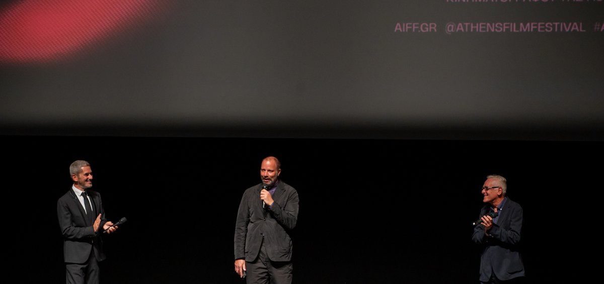 Το κοινό που κατέκλυσε την αίθουσα Τριάντη για να παρακολουθήσει την πολυαναμενόμενη πρεμιέρα στη δεύτερη μόλις φεστιβαλική προβολή της στον κόσμο, μετά την φετινή Biennale, περίμενε μια θεαματική έκπληξη: την παρουσία στη σκηνή του διεθνούς Γιώργου Λάνθιμου και του κορυφαίου συνεργάτη του, μοντέρ, Γιώργου Μαυροψαρίδη!