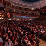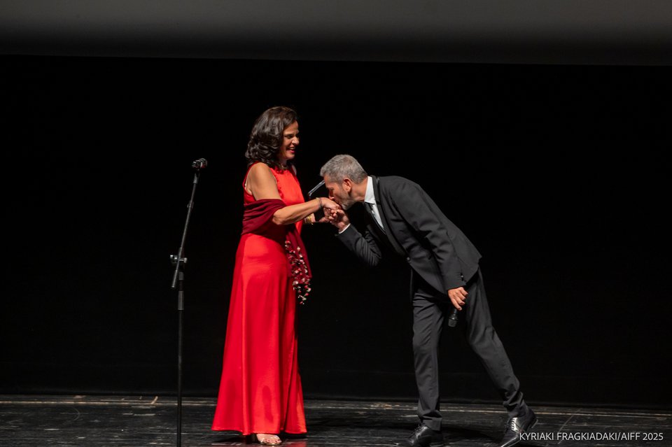 Η Τατιάνα Παππά, ανέβηκε στη σκηνή και καλωσόρισε το κοινό με μια συγκινητική αναδρομή στα 31 χρόνια Νυχτών Πρεμιέρας: πάνω από 3.000 ταινίες, 100 αφιερώματα και πάνω από ένα εκατομμύριο θεατές που έχουν ζήσει την εμπειρία του Φεστιβάλ.