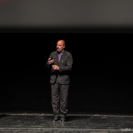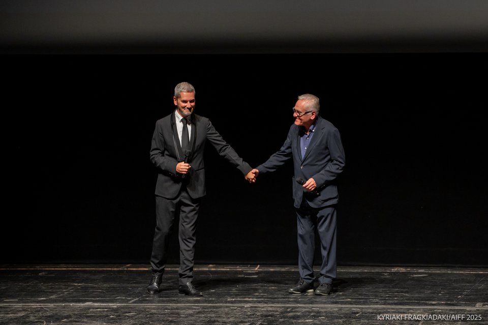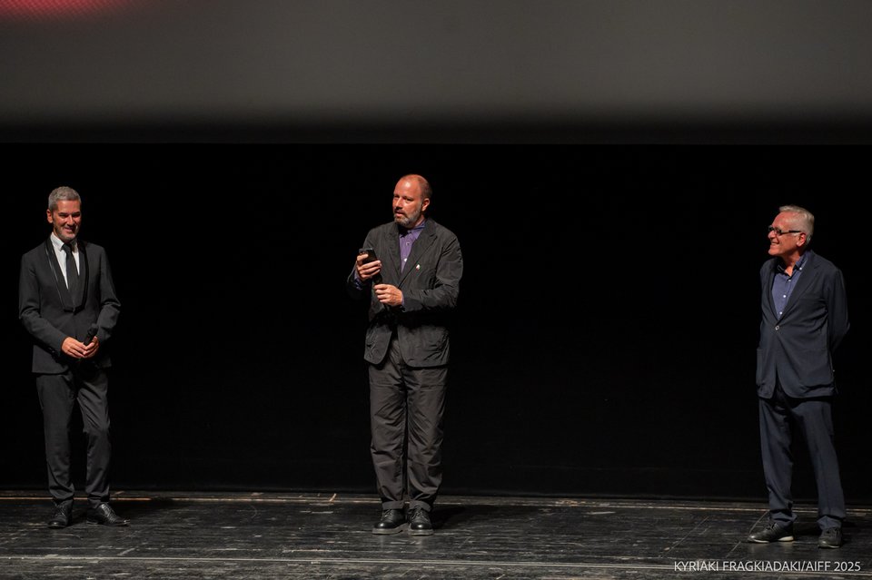 Στη συνέχεια, μίλησε με τα πιο θερμά λόγια για «έναν από τους κορυφαίους μοντέρ και καλλιτέχνες στη χώρα και το εξωτερικό, πόσο εξαιρετικό είναι το μοντάζ του στη ΒΟΥΓΟΝΙΑ, πώς φτιάχνει τόνους, ρυθμό, πώς οδηγεί το κοινό εκεί που θέλει ο σκηνοθέτης», και εκφράζοντας την χαρά και την τιμή του για την παρουσία του στο Φεστιβάλ, κάλεσε στη σκηνή τον Γιώργο Μαυροψαρίδη με το κοινό να ξεσπά σε χειροκρότημα.